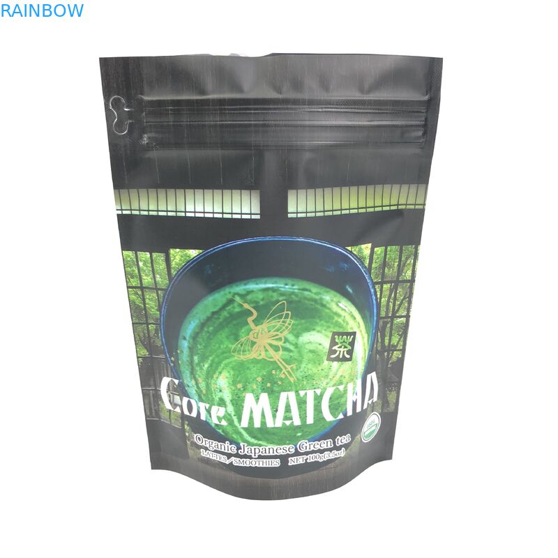 مادة MOPP قابلة لإعادة الغلق مخصصة باللون الأخضر للشاي الأخضر Doypack Matt Bolsas الوقوف الحقيبة زيبر كيس التغليف