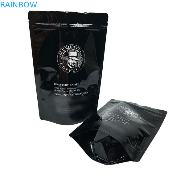 أكياس القهوة مطبوعة مخصصة كيس حبوب البن 100 جرام / 250 جرام / 500 جرام / 1 كيلوجرام سستة الوقوف أكياس القهوة المطبوعة السوداء اللامعة