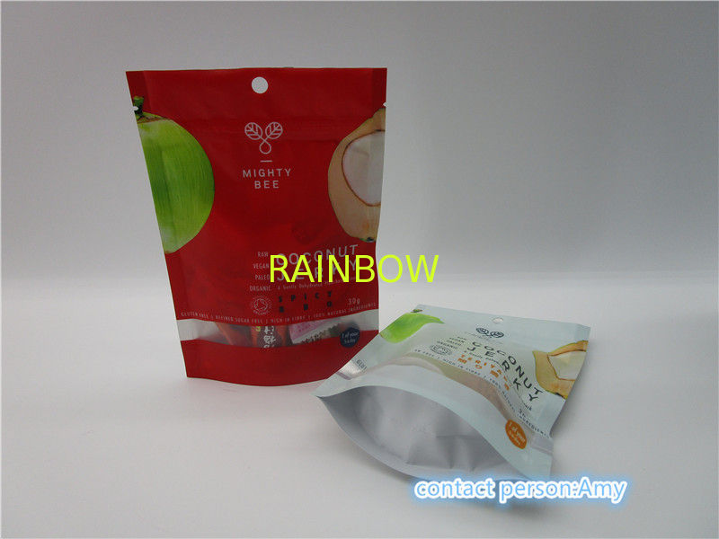 PET + AL + PE جوز الهند متشنج سناك حقيبة التعبئة والتغليف ماتي النهاية / المصقول